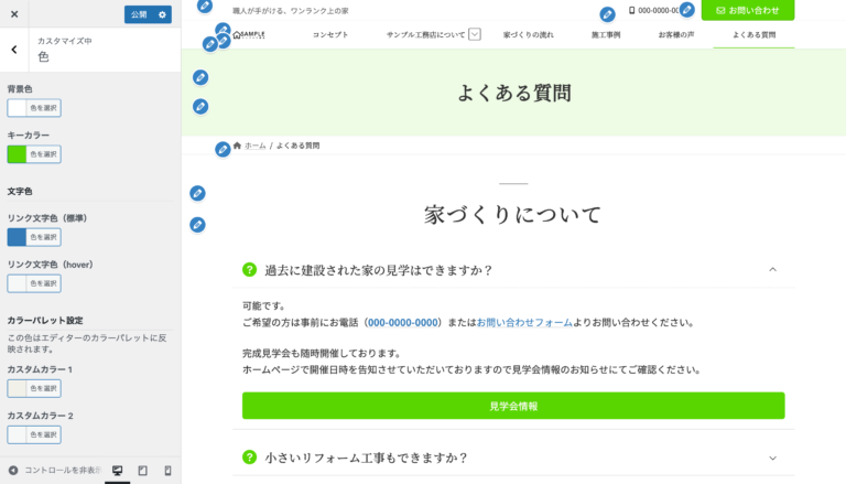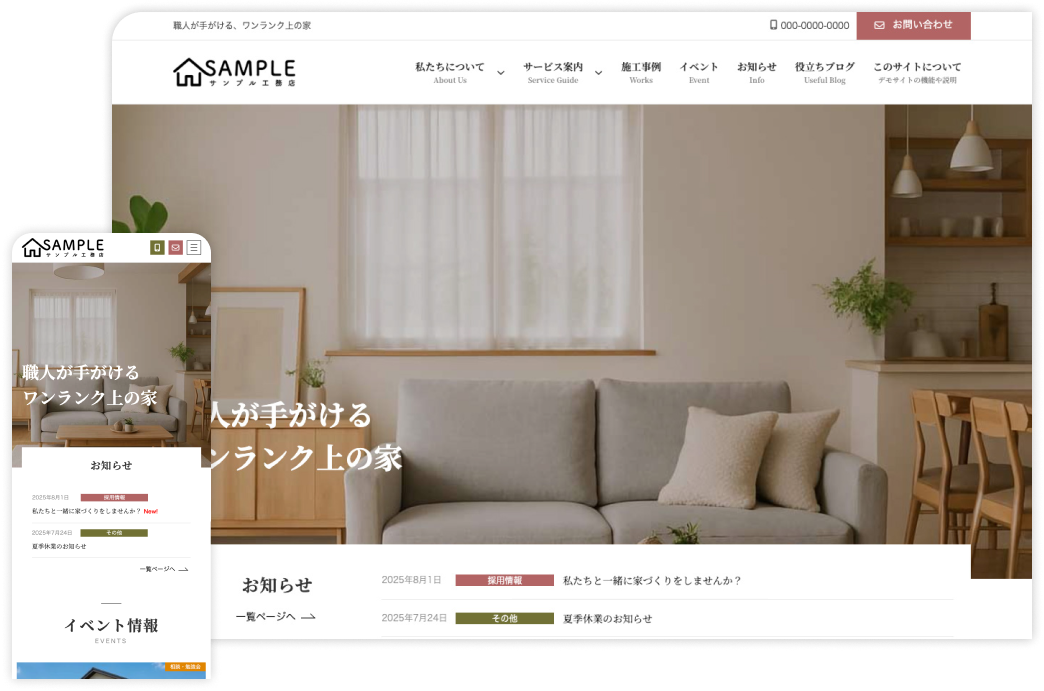 たとえば、こちらの工務店デモサイトは、人気 WordPress テーマ X-T9 および