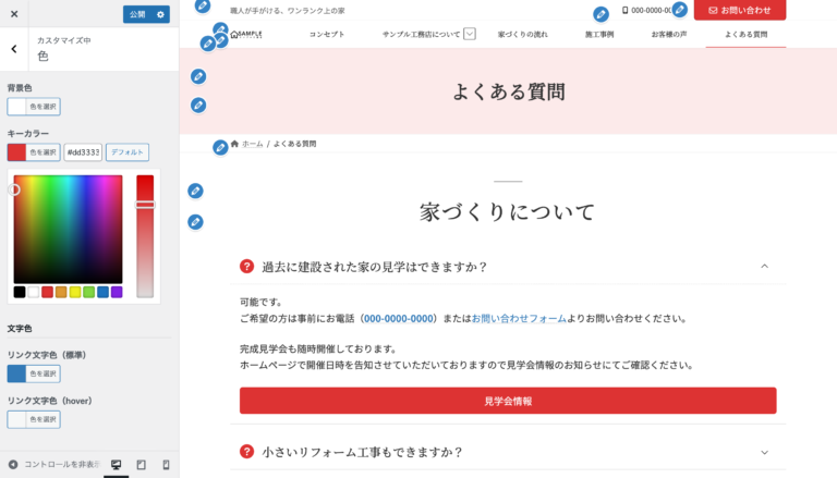 Lightningに搭載されているキーカラーの設定から、サイト全体のメインカラーを一括で簡単に変えることができます。