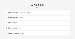 「グループ」ブロックと VK Blocks の「新 FAQ」ブロックを組み合わせたパターンです。