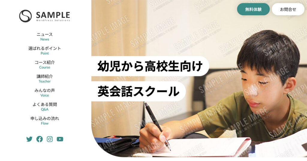 このパターンではテーマ「X-T9」「Lightning ( G3 / theme.json )」での使用を想定しています。他のテーマでは崩れる可能性がありますのでご注意ください。
